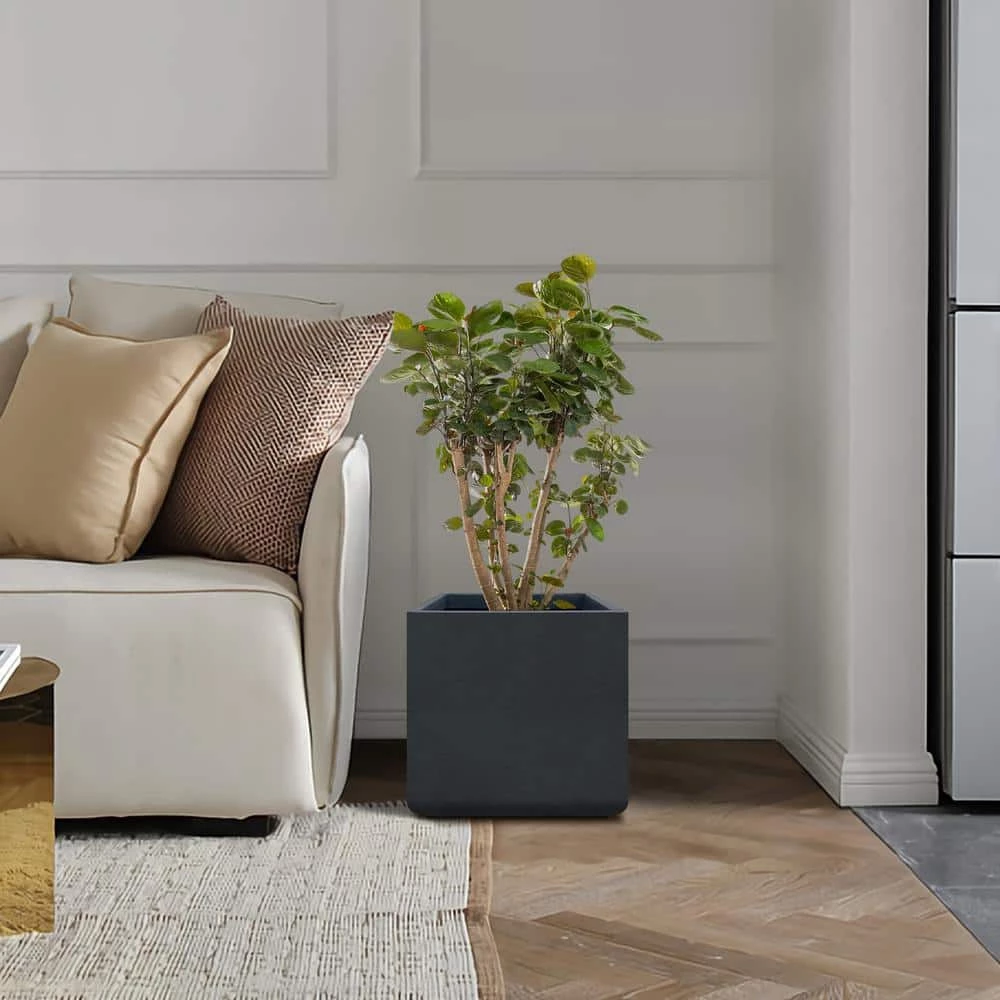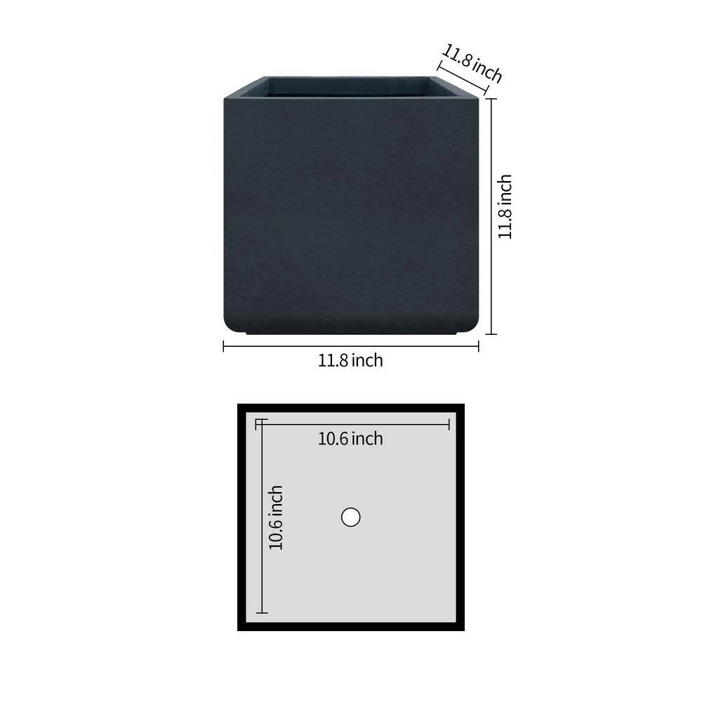 KANTE 11.81 x 11.81 in. Square Charcoal Lightweight Concrete and Weather Resistant Fiberglass Planter w/Drainage Hole