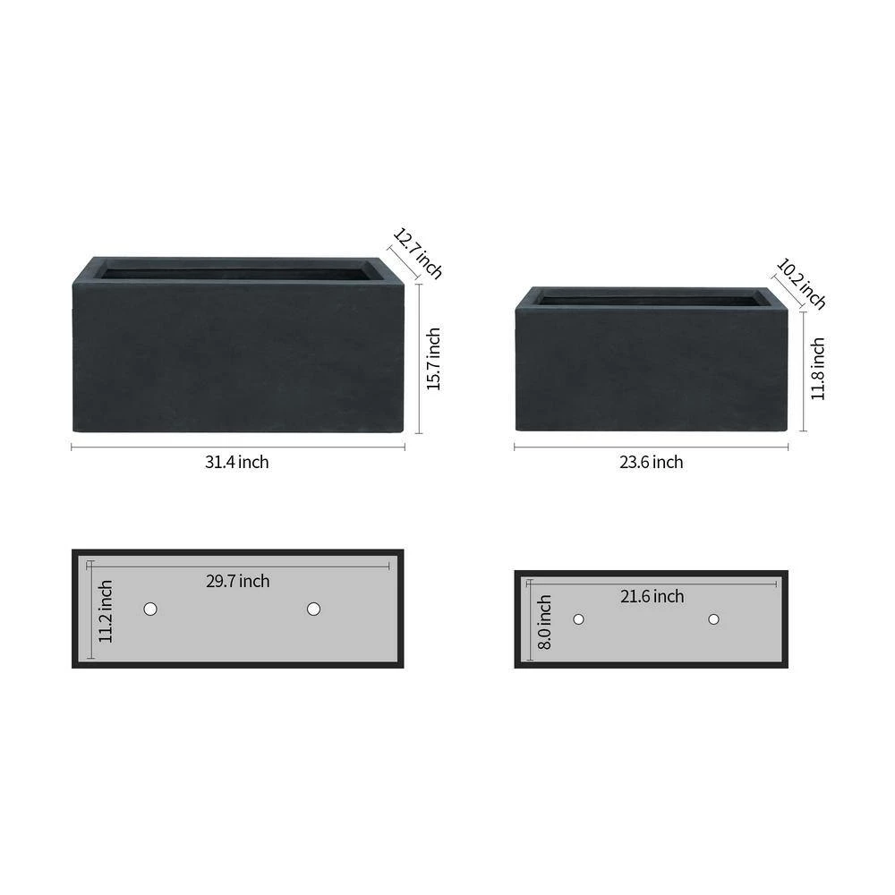 - Ideal size for indoor and outdoor: planters measure 12.7 in. W x 31.4 in. L x 15.7 in. H and 10.2 in. W x 23.6 in. L x 11.8 in. H and make a great addition to any room, apartment balcony or large backyard patio by standing out with its unique look