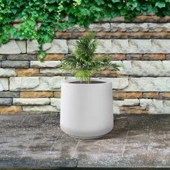 KANTE 17.3 in. H Round Pure White Concrete Planter, Outdoor Indoor Large Planter Pots Containers with Drainage Holes