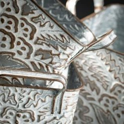 SULLIVANS 9.5 in., 8.5 in. and 7.5 in. Gray Metal Flourish Planter with Handles – (Set of 3)