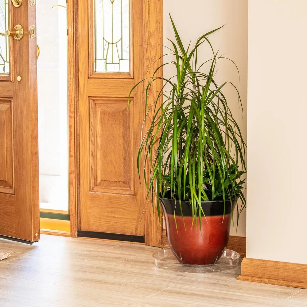 Keep your floors, carpets, furniture and decks protected from dirt or water stains with the help of the Plastic Plant Saucer from Vigoro. The clean symmetrical shape of this plant tray is sure to blend in seamlessly with your stylish home or patio decor. Made from weather resistant clear plastic, this saucer works indoors and outdoors and is ideal for plants that sit in decorative pots. This drip tray is designed to catch any excess water from your plants. The plastic construction prevents leaks and damage to your surfaces.