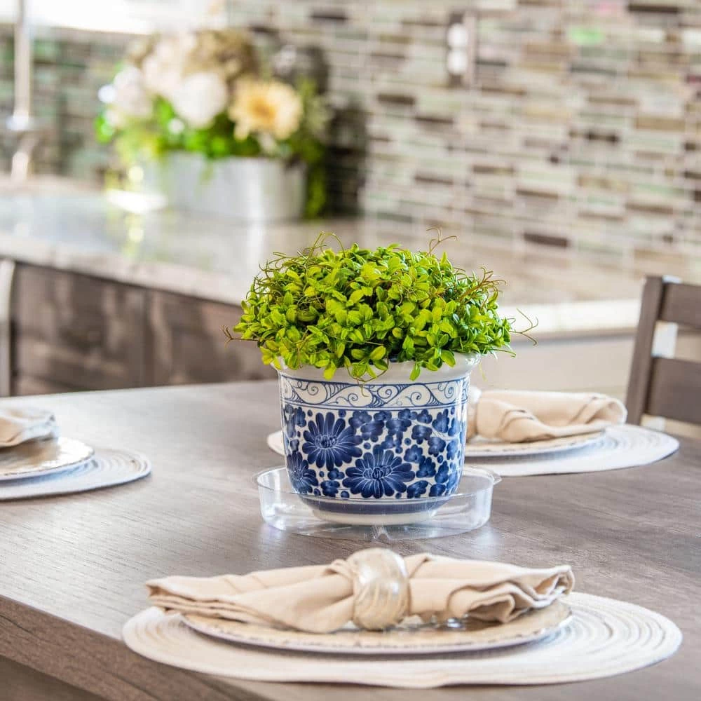Keep your floors, carpets, furniture and decks protected from dirt or water stains with the help of the Plastic Plant Saucer from Vigoro. The clean symmetrical shape is sure to blend in seamlessly with your stylish home or patio decor. Made from weather proof clear plastic, this saucer works indoors and outdoors and is ideal for plants that sit in decorative pots. Designed to catch any excess water from your plants, the plastic construction prevents leaks and damage to your surfaces.